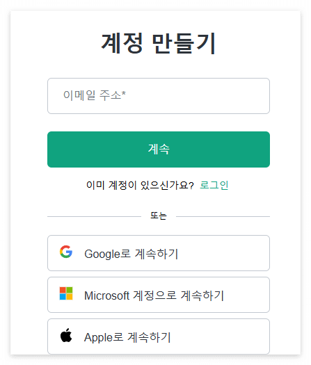 구글이나 마이크로소프트, 애플 등으로 계정을 만들어줍니다.